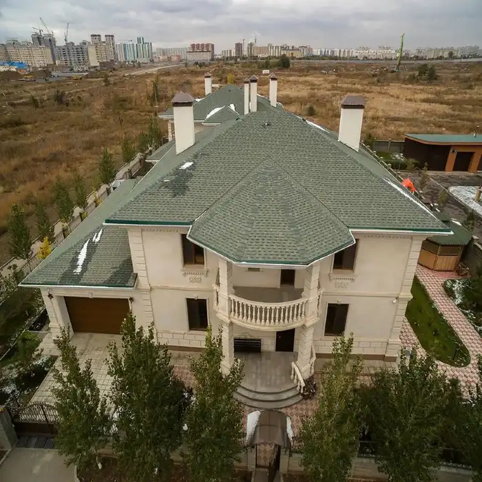 Гибкая черепица может применяться не только на малоэтажных жилых зданиях, но и при строительстве административных, жилых многоэтажных и других типов зданий.